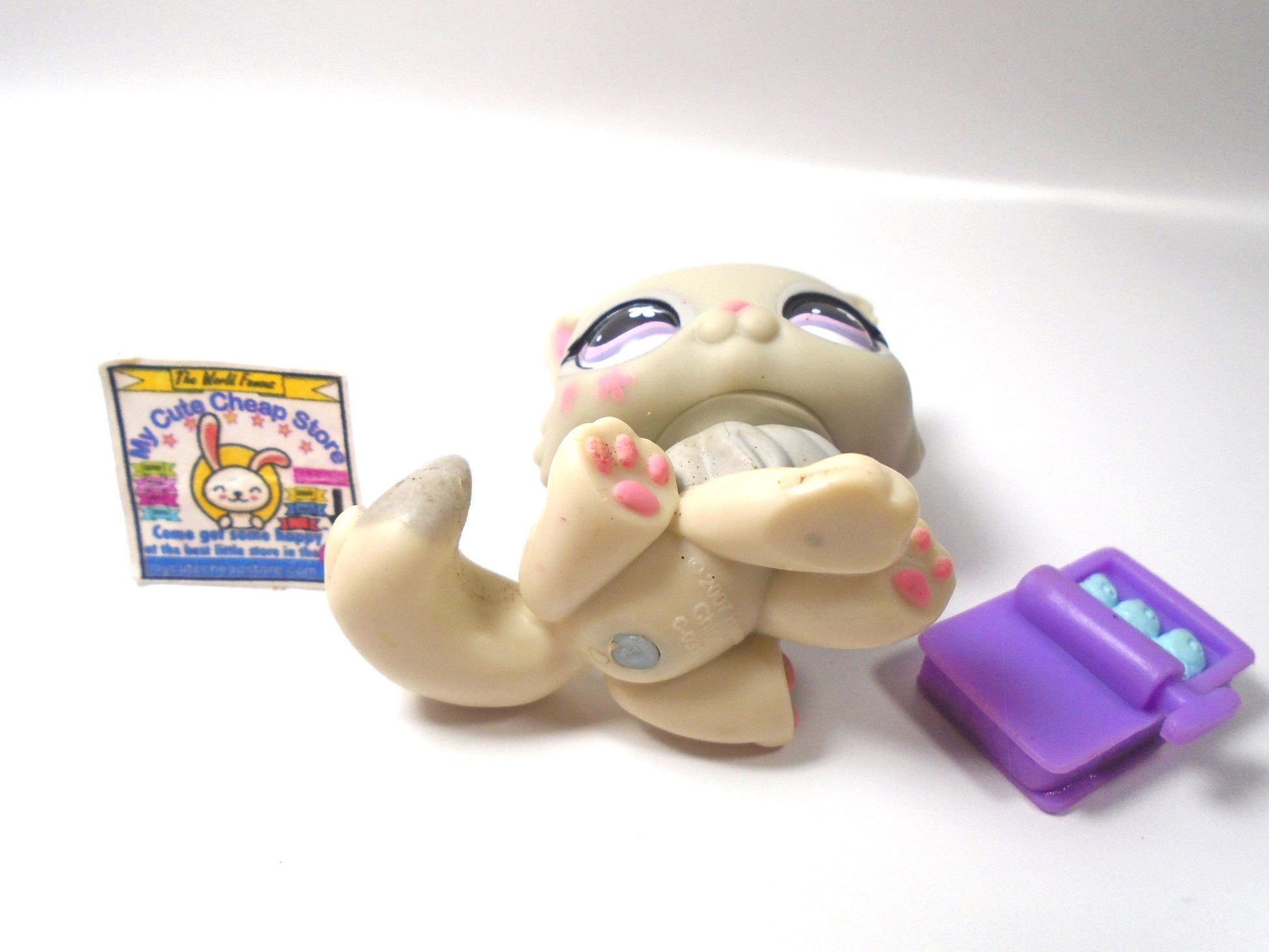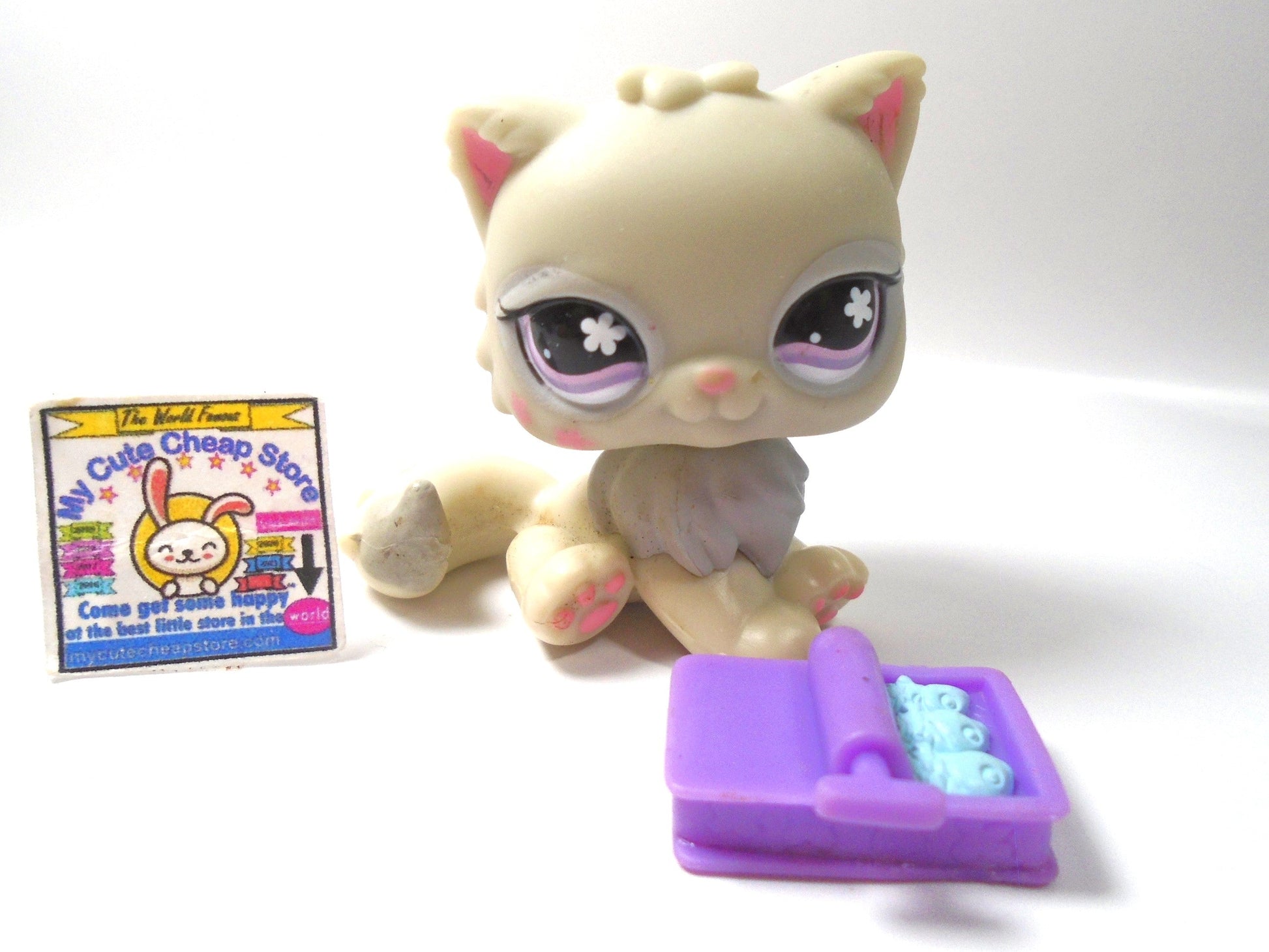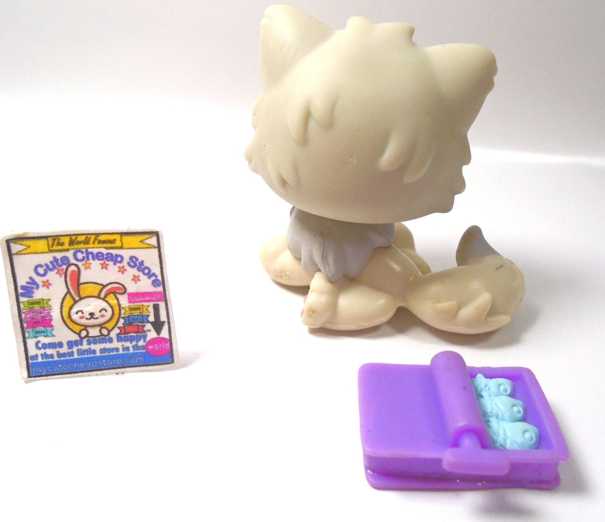 Littlest Pet Shop Cuddliest Grey Persian Cat #722 with sardines