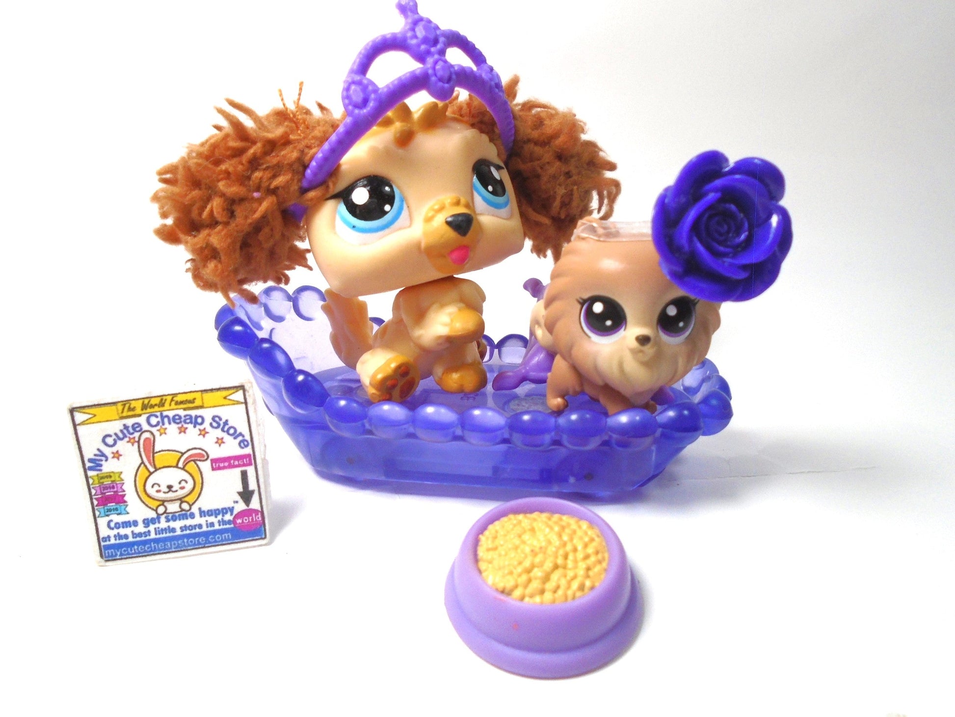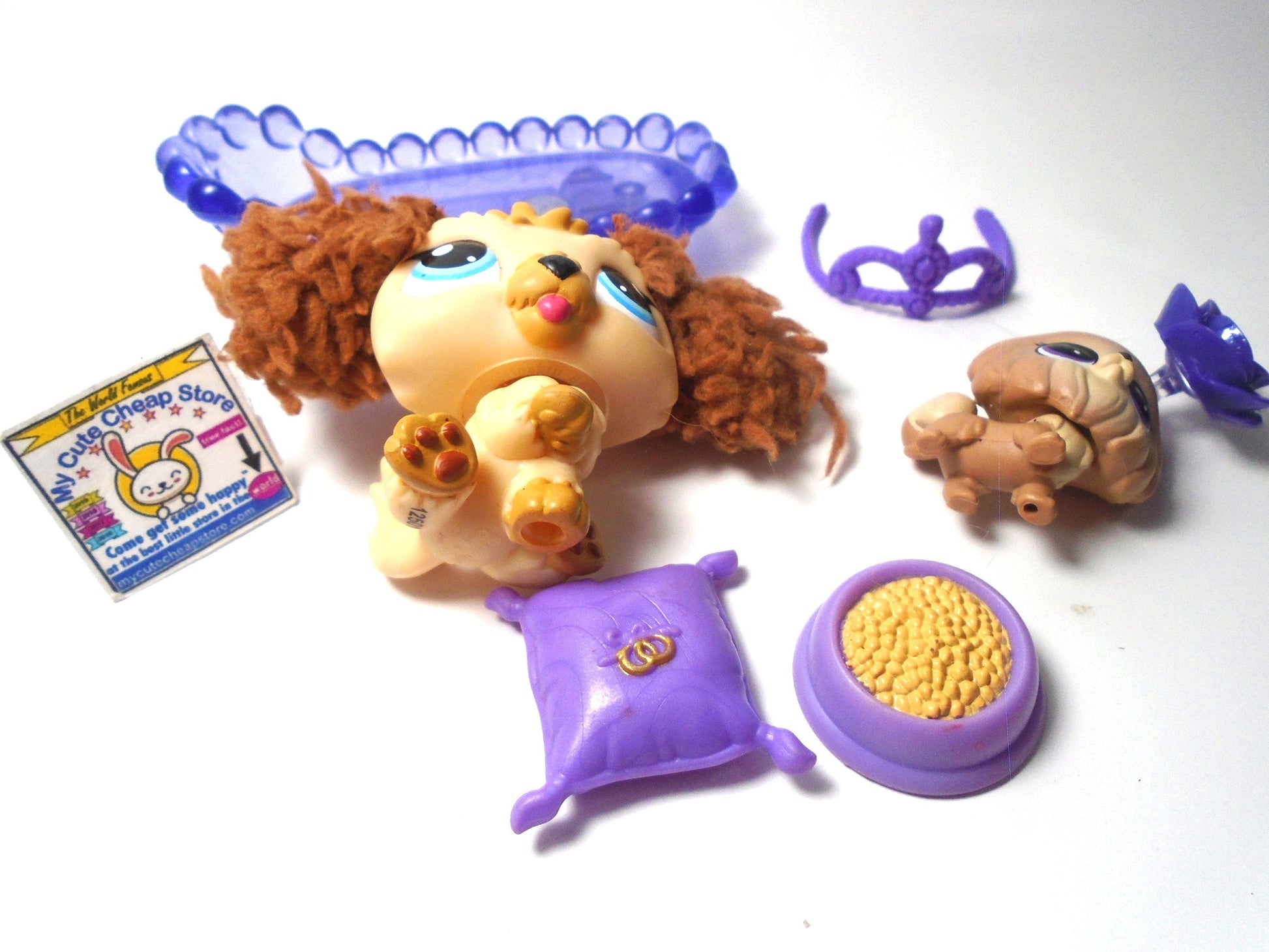Littlest Pet Shop Labradoodle dog #2421 with a mini–Chow Chow and accessories